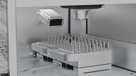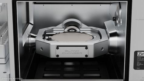 ブランクチェンジャーは、ディスクをストレージとオービット間で自動搬送し、ディスク交換を自動化します。さらに、統合された ToF(Time of Flight)センサーが、ストレージ内のディスク有無と空きスロット状況を監視します。多様な歯科材料はもちろん、色調ディスク高さの異なる修復物も、手作業の中継工程なしに自動で連続製作できるようになります。付属のキャリブレーションディスクを用いることで、ブランクチェンジャーはストレージ内でのディスク位置を記憶し、ストレージとオービット間の距離を算出。ディスクの移載を安全かつ安定して行えるよう設計されています。