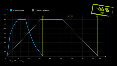 焼結プログラムには、Zirkonzahn ジルコニア専用高速焼結プログラムが装備されており、合計3時間でユニットを焼結します。(ユニットの大きさによる)