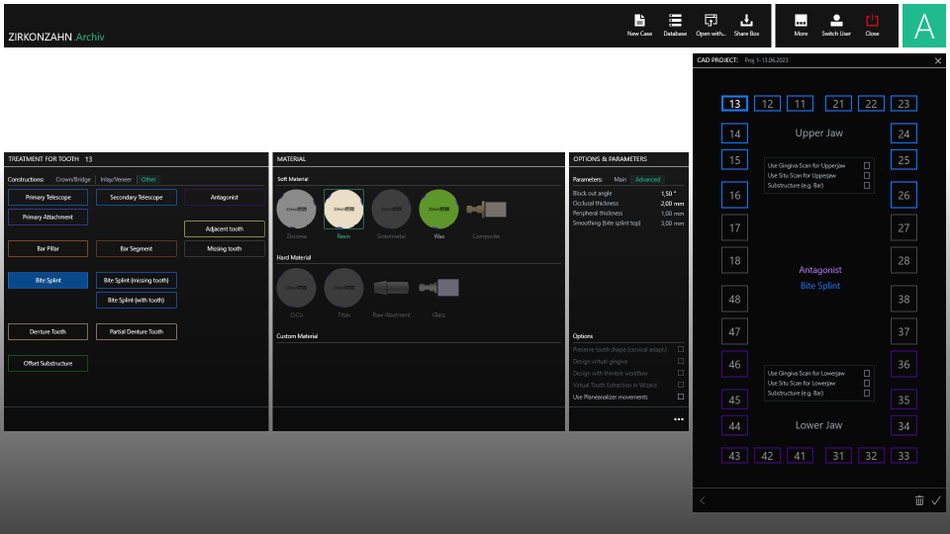 新しい追加モジュールにより、Zirkonzahn.Archiv の基本バージョンが多数のスマート機能で拡張されました。ドングル不要のソリューションにより、Zirkonzahn アカウントを通じてリモート利用が可能です。